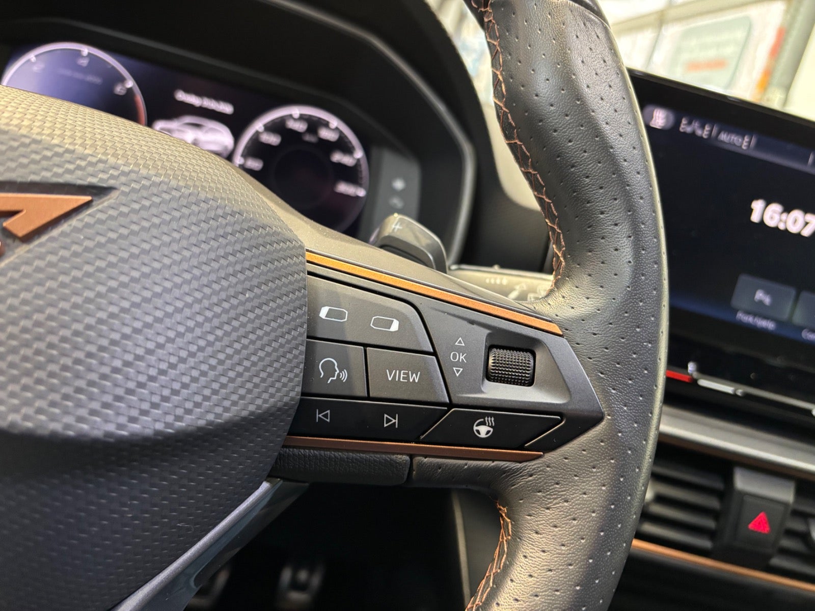 kørecomputer, digitalt cockpit, bagagerumsdækken, multifunktionsrat, læderrat, dellæderindtræk, højdejust. førersæde, højdejust. forsæder, justerbar lændestøtte, splitbagsæde, mørk loftbeklædning, ambiente belysning, alufælge, 19"" alufælge, led kørelys, fuld led forlygter, led baglygter, tagræling, mørktonede ruder i bag, el-klapbare sidespejle m/varme, automatgear, ratgearskifte, fjernb. centrallås, nøglefri adgang, aut. nedbl. bakspejl, udv. temp. måler, sædevarme, 4x el-ruder, automatisk start/stop, trådløs mobilopladning, elektrisk parkeringsbremse, cd/radio, navigation, håndfrit til mobil, musikstreaming via bluetooth, usb-c tilslutning, dab radio, alarm, regnsensor, parkeringssensor (for), parkeringssensor (bag), skiltegenkendelse, isofix, antispin, vognbaneassistent, automatisk lys, træthedsregistrering, blindvinkelsassistent, esp, dæktryksmåler, 6 airbags, automatisk nødbremsesystem